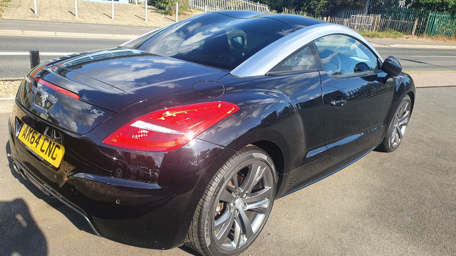 HERE WE HAVE AN EYE CATCHING PEUGEOT RCZ HDI GT TURBO DIESEL SPORTS HATCHBACK FINISHED IN GLOSS BLACK WITH SILVER ROOF SECTION AND GLASS TINTED REAR WINDOW LOVELY GREY MULTI FIN ALLOYS 6 MANUAL LEATHER INTERIOR RECENT CAMBELT CHANGED